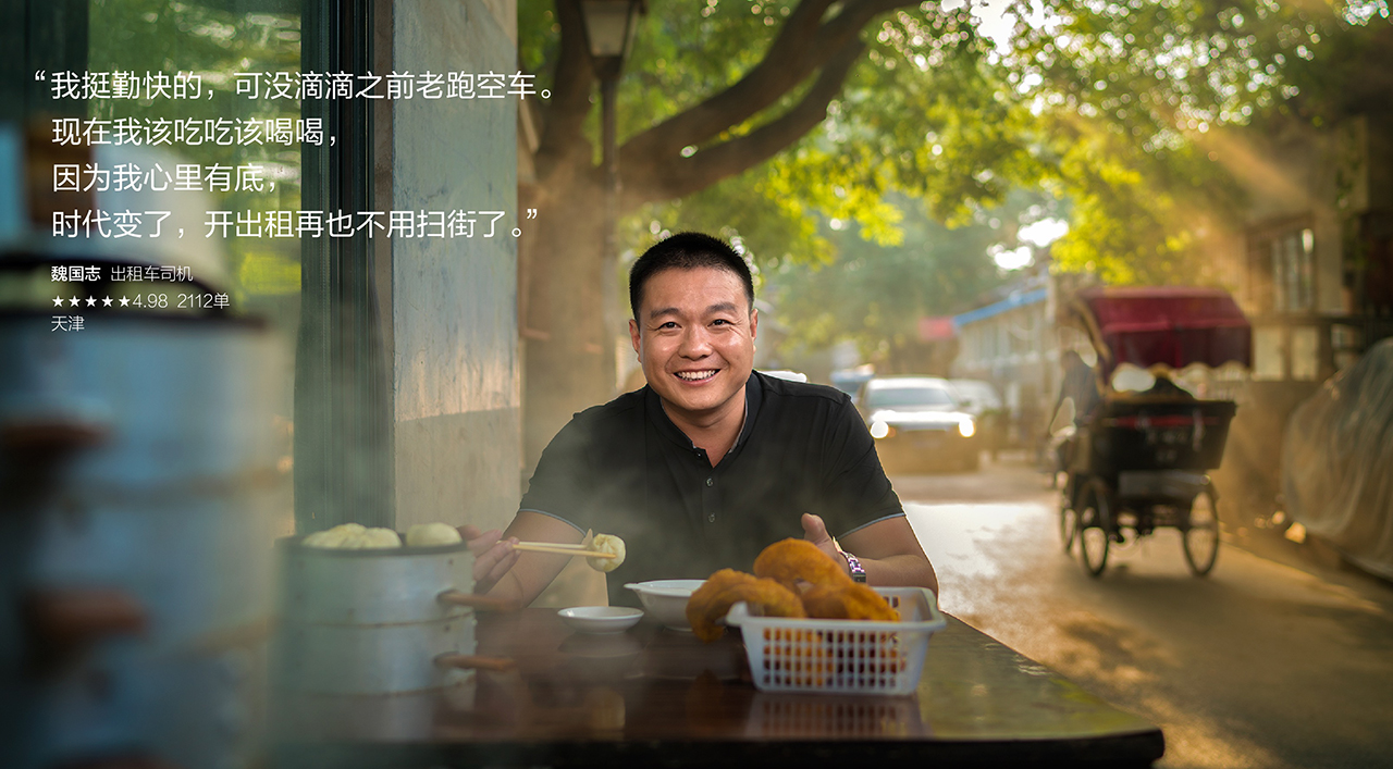 “他们是这个时代的平凡人,如父兄,如邻居,如伙伴,在努力为乘客提供出行服务的同时,自信地驾驭着自己的生活。” ——滴滴品牌市场部